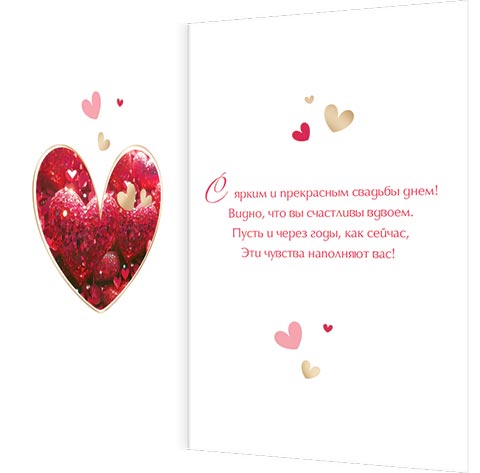 С ярким и прекрасным свадьбы днем! Видно, что вы счастливы вдвоем. Пусть и через годы, как сейчас, Эти чувства наполняют вас!