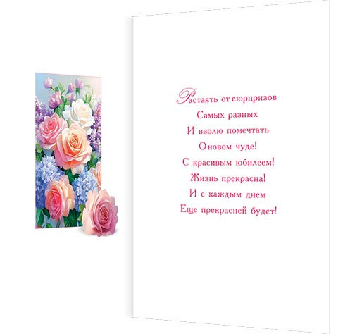 Растаять от сюрпризов Самых разных И вволю помечтать О новом чуде! С красивым юбилеем! Жизнь прекрасна! И с каждым днем Еще прекрасней будет!