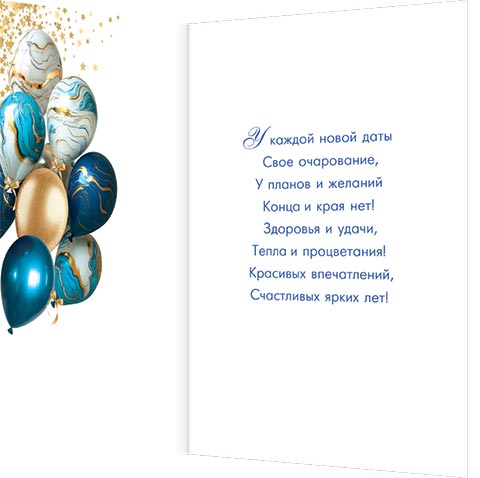 У каждой новой даты Свое очарование, У планов и желаний Конца и края нет! Здоровья и удачи, Тепла и процветания! Красивых впечатлений, Счастливых ярких лет!