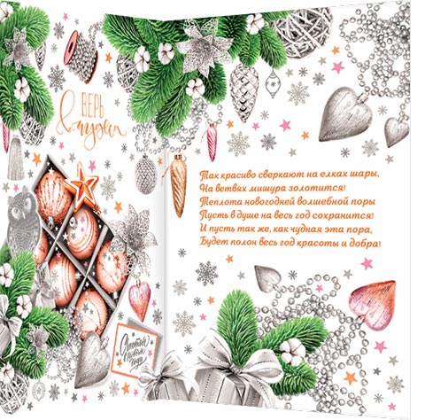 Так красиво сверкают на елках шары, На ветвях мишура золотится! Теплота новогодней волшебной поры Пусть в душе на весь год сохранится! И пусть так же, как чудная эта пора, Будет полон весь год красоты и добра!