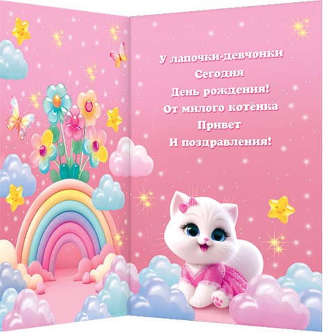 У лапочки-девчонки Сегодня день рождения! От милого котёнка Привет и поздравления!