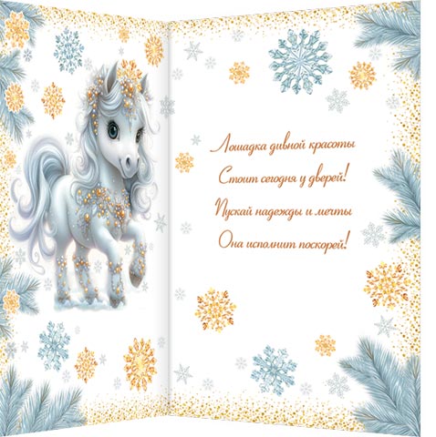 Лошадка дивной красоты Стоит сегодня у дверей! Пускай надежды и мечты Она исполнит поскорей!