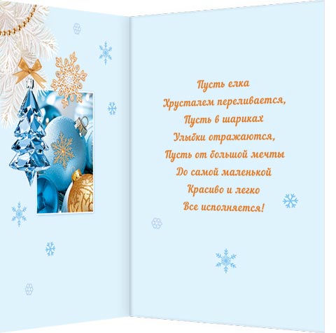 Пусть елка Хрусталем переливается, Пусть в шариках Улыбки отражаются, Пусть от большой мечты До самой маленькой Красиво и легко Все исполняется!