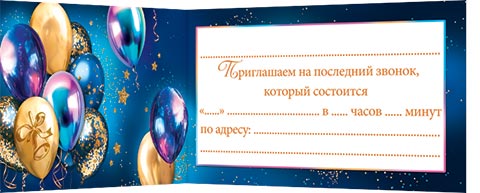 | 2-86-1077 Приглашение на последний звонок (золотые блестки) | размер: Карточка блестки |