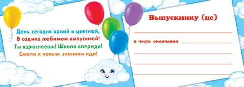День сегодня яркий и цветной, В садике любимом выпускной! Ты взрослеешь! Школа впереди! Смело к новым знаниям иди!