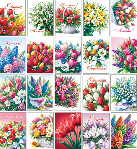 Набор мини-открыток "Яркая весна" (20 шт.)