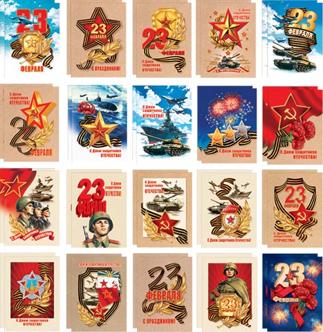 Набор мини-открыток "23 ФЕВРАЛЯ" (40 шт.)